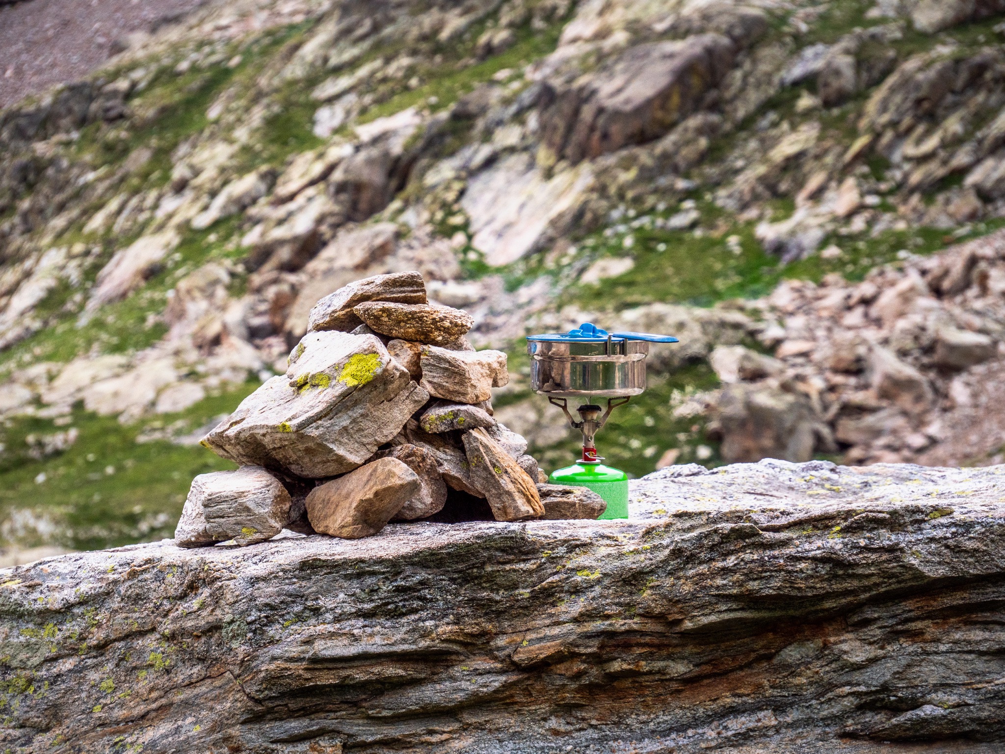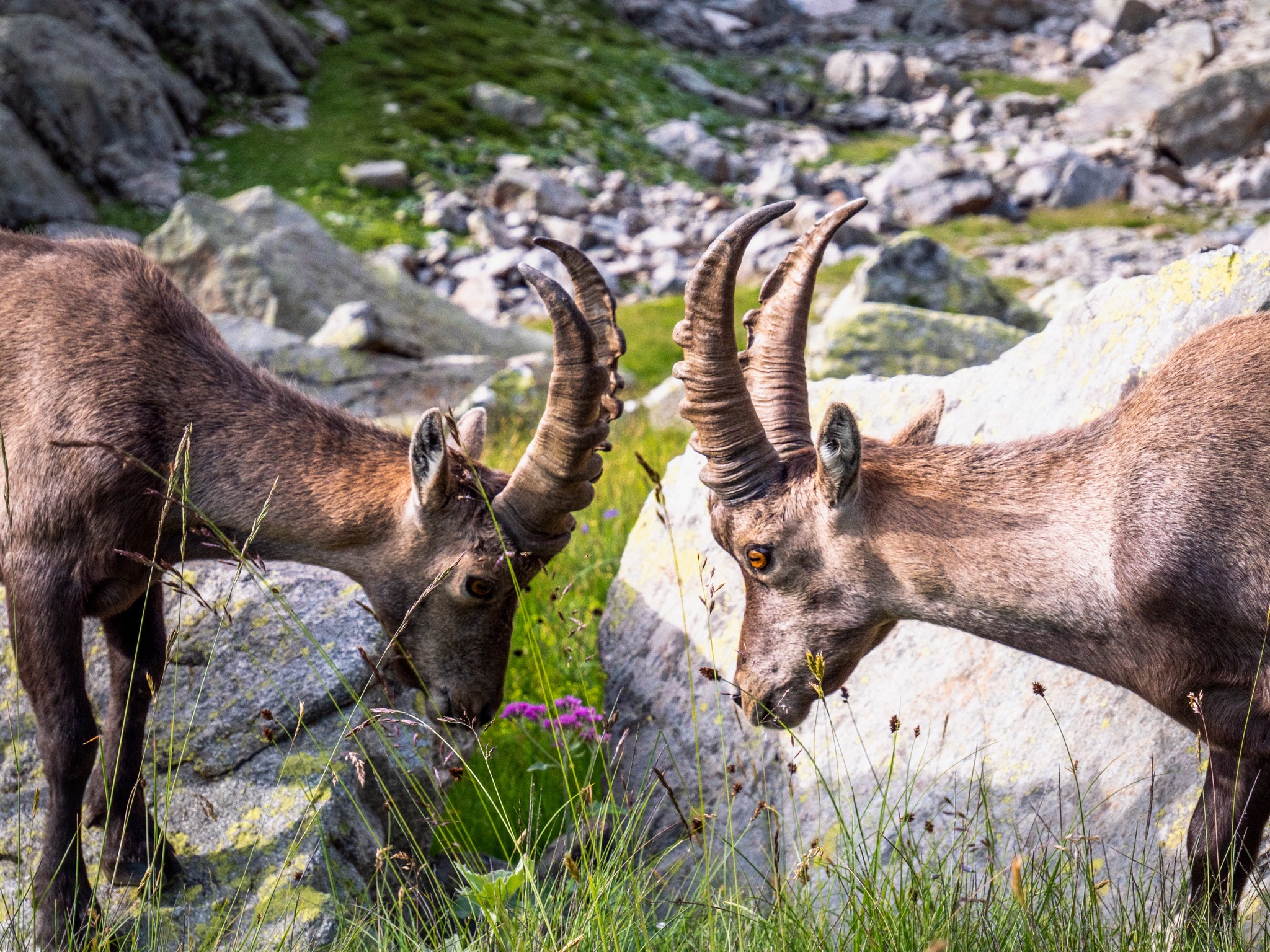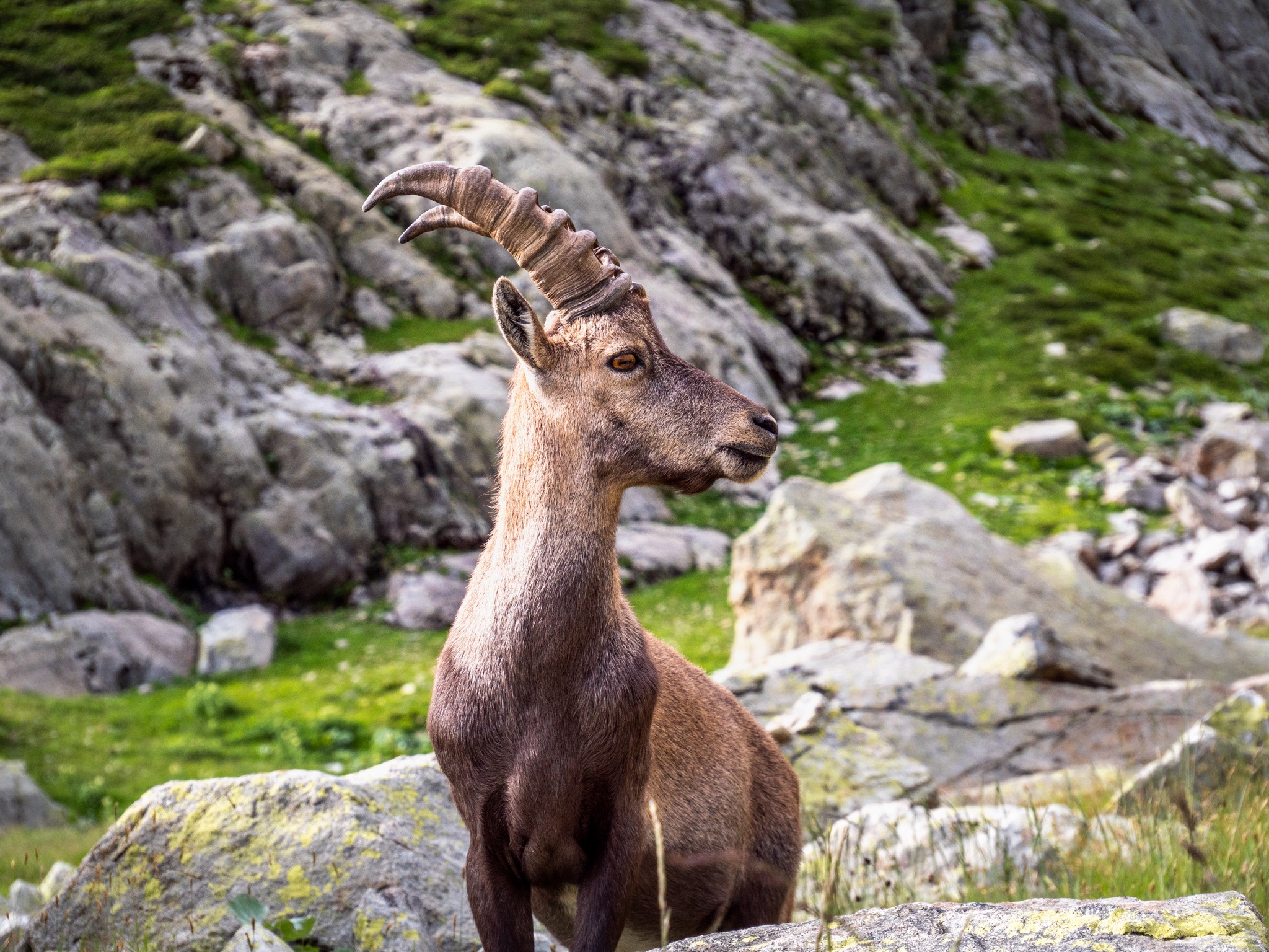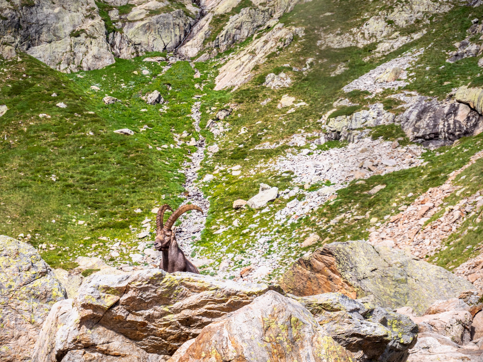 Après avoir installé notre tente pour la nuit, une famille de bouquetins est venu nous rendre visite. Au réveil cette famille de bouquetins est venue juste à côté de notre lieu de bivouac et nous avons pu ainsi les observer dans des conditions exceptionnelles.