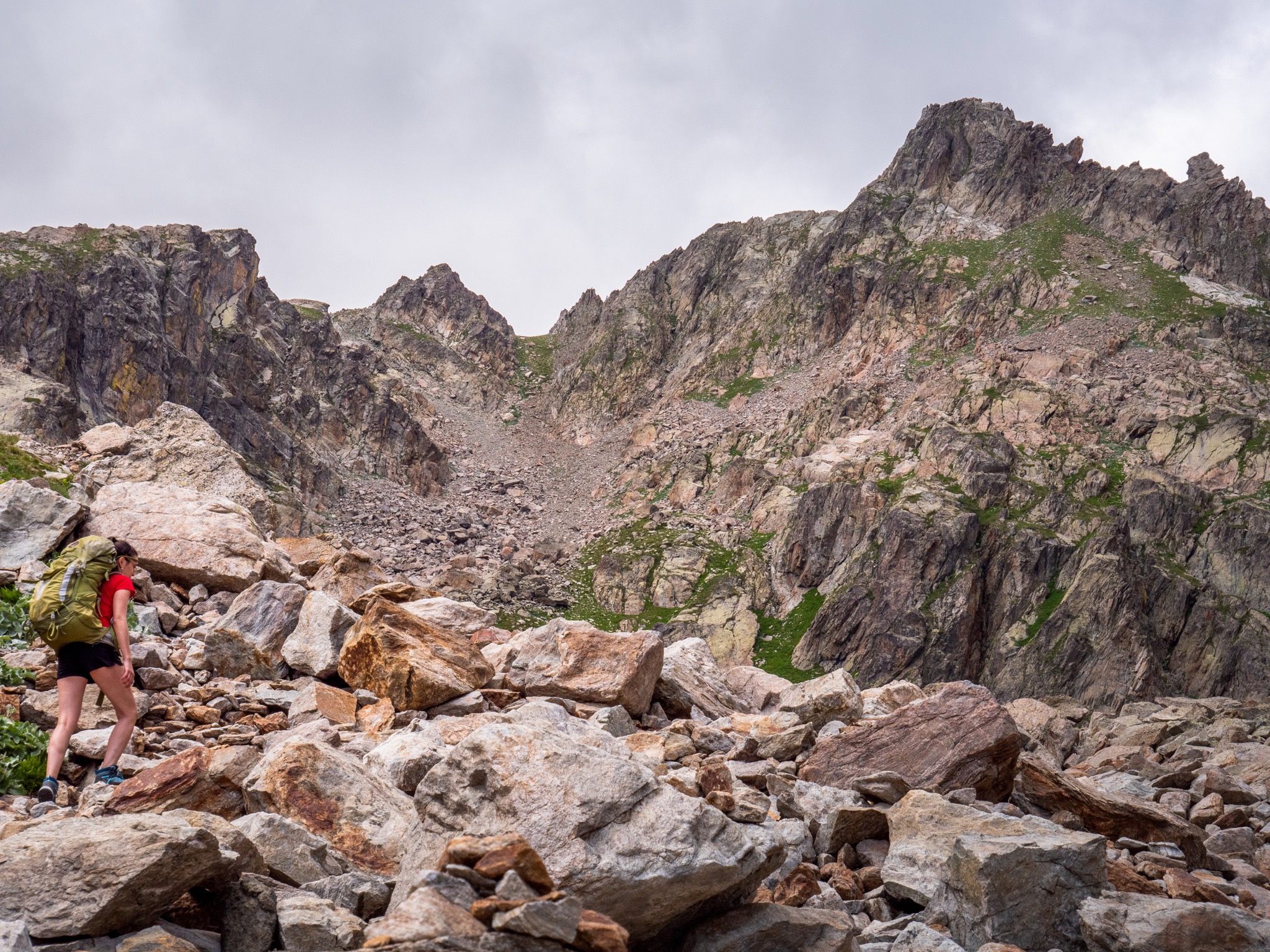 C est tres difficile ,le passage par le col de la ruine est une ligne droite dans la pente (pierrier) qui se termine presqu a la verticale .