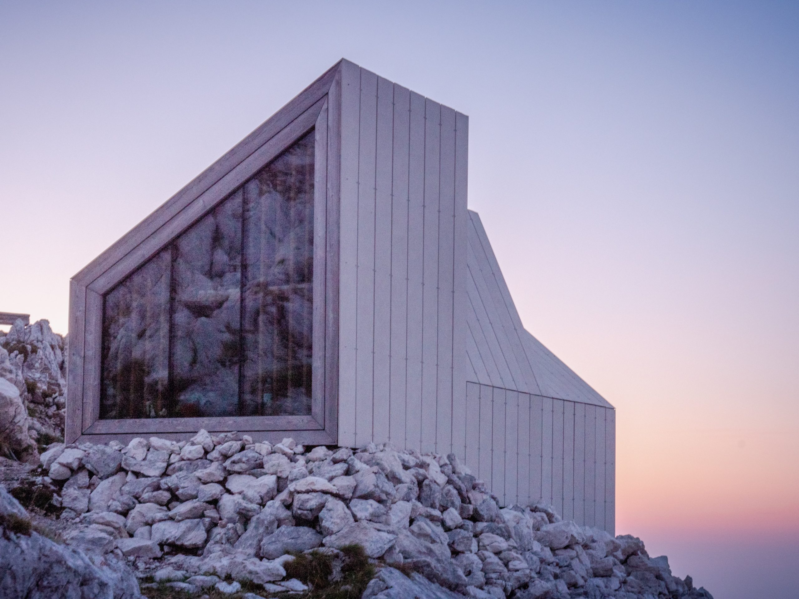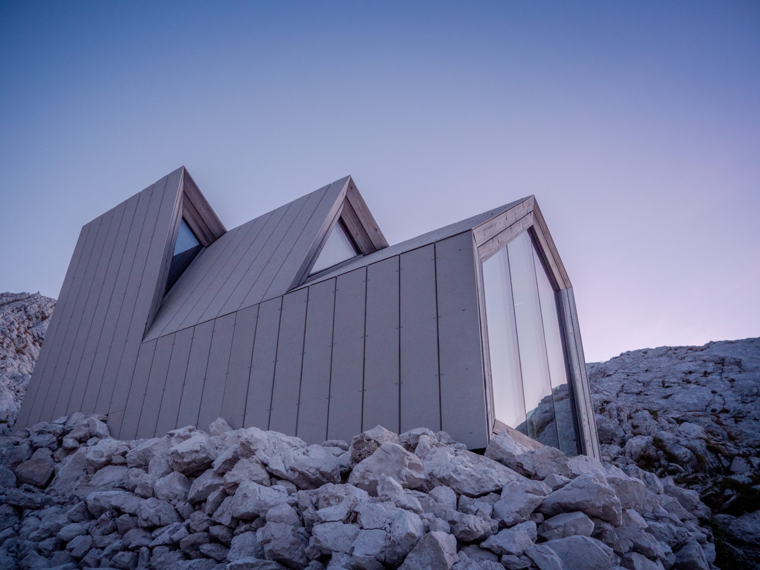 Le Bivak Pod Skuto est un bivouac situé en Slovénie très réputé pour son architecture. Il se trouve ici, pour l'atteindre, vous devrez parcourir 5km et les 1500m de dénivelé positif le séparant le parking le plus proche.