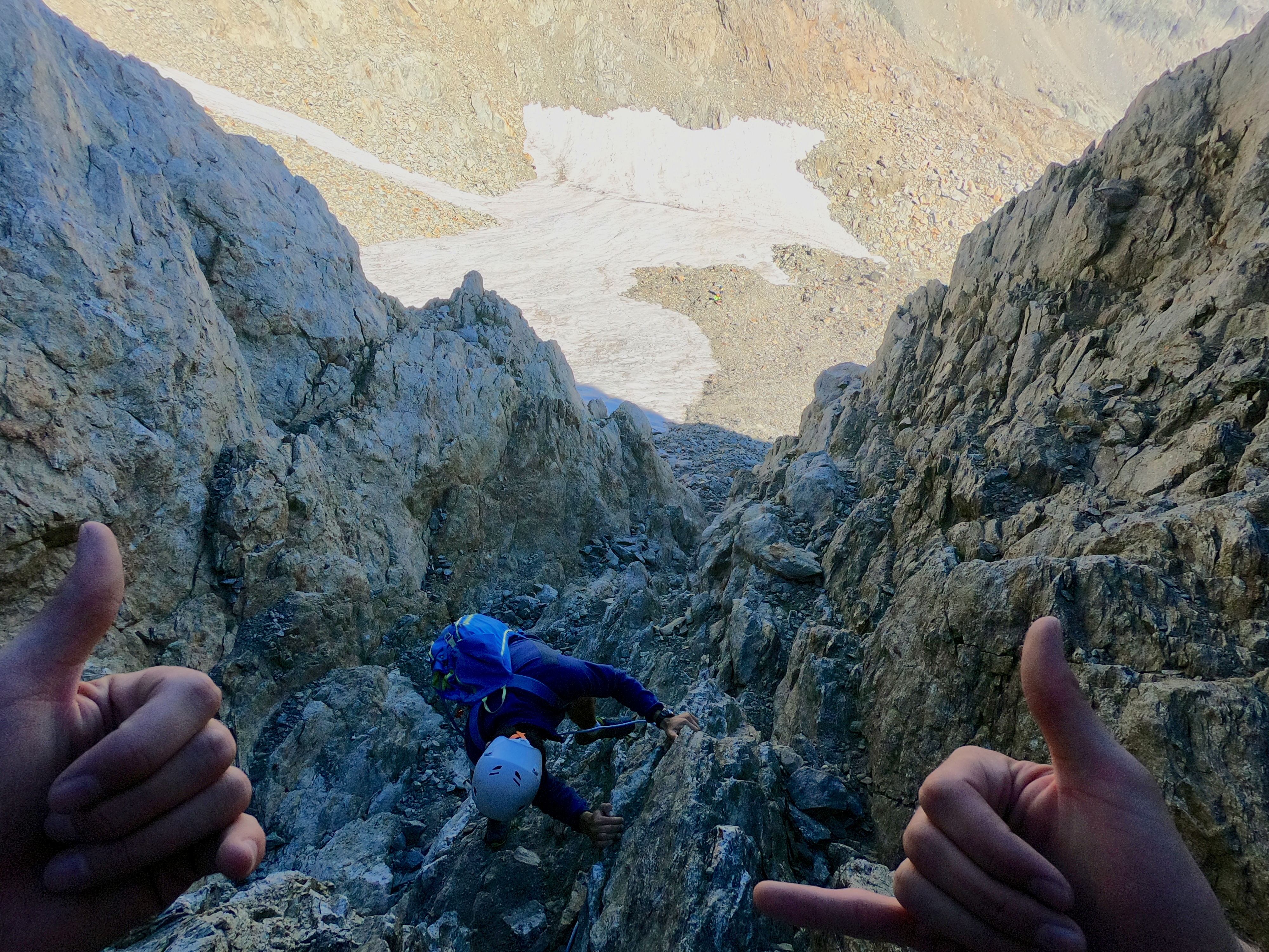 Une fois en haut nous avons essayer de rejoindre le balcon du Gélas en suivant l'arrête mais nous avons finalement décider de redescendre par le couloir du Gélas par manque de connaissance du terrain reliant la Cime et le Balcon du Gélas.