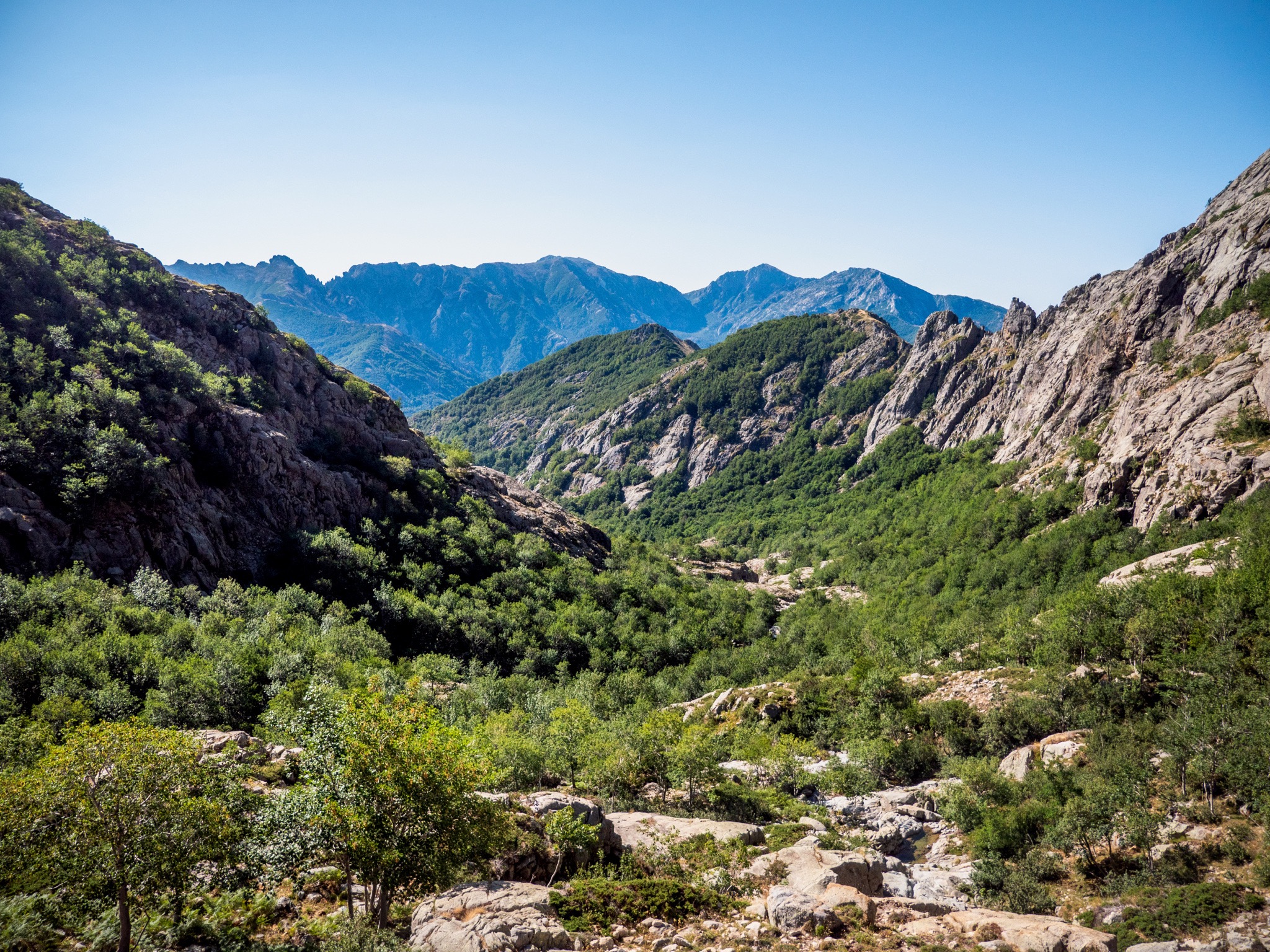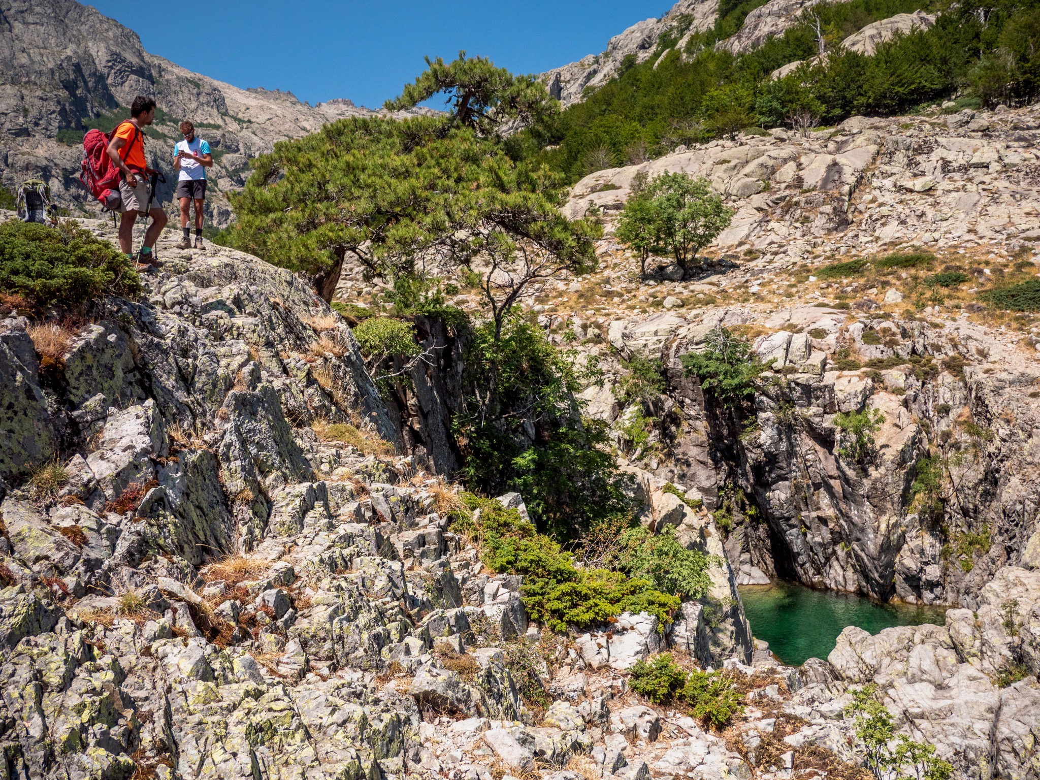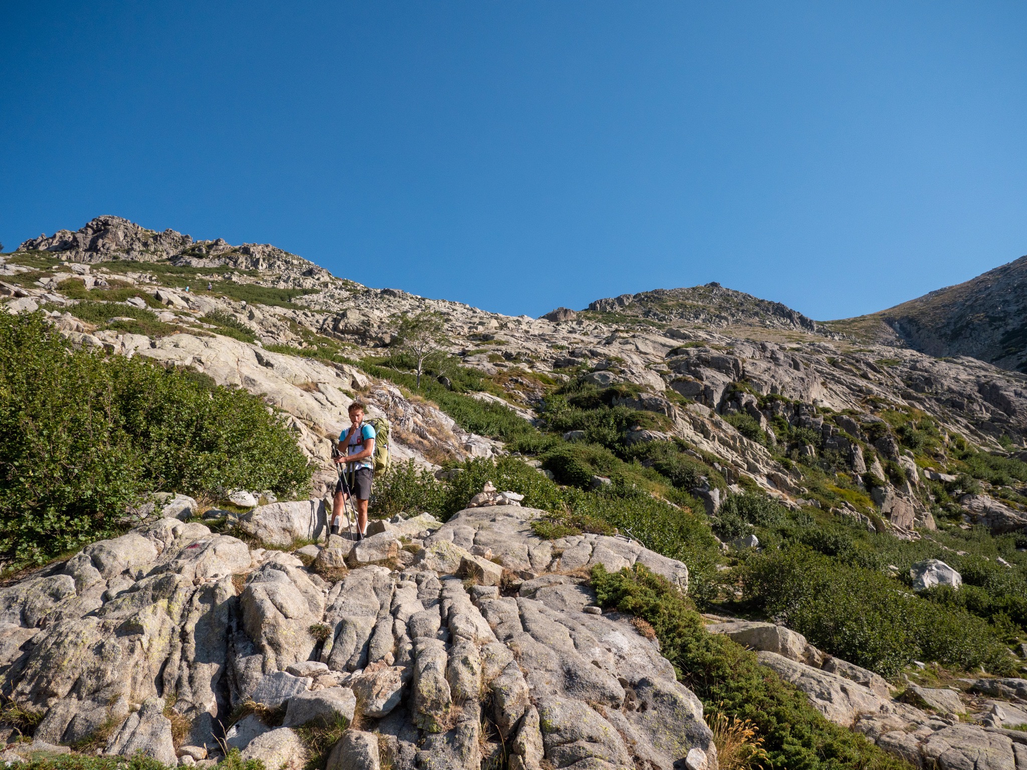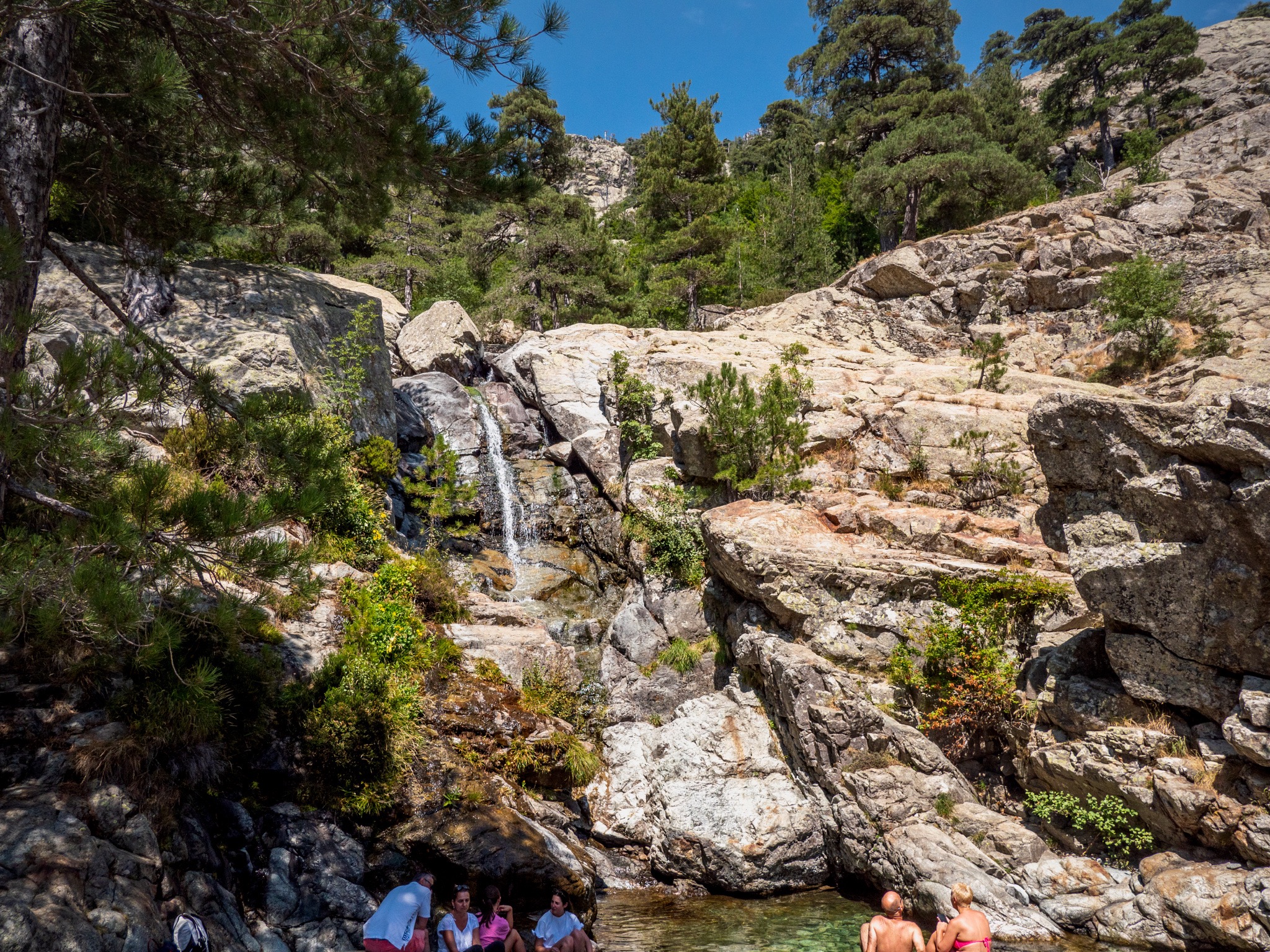 Pour cette huitième journée sur le GR20, nous avons réalisé la dernière étape de la partie nord du GR20. Cette étape relie le refuge de l'Onda et la ville de Vizzavona. En chemin il y a de nombreuse possibilité de baignade et notamment à la Cascade des Anglais. Il est aussi possible de monter jusqu'au sommet du Monte d'Oro avant d'attaque la descente sur Vizzavone.