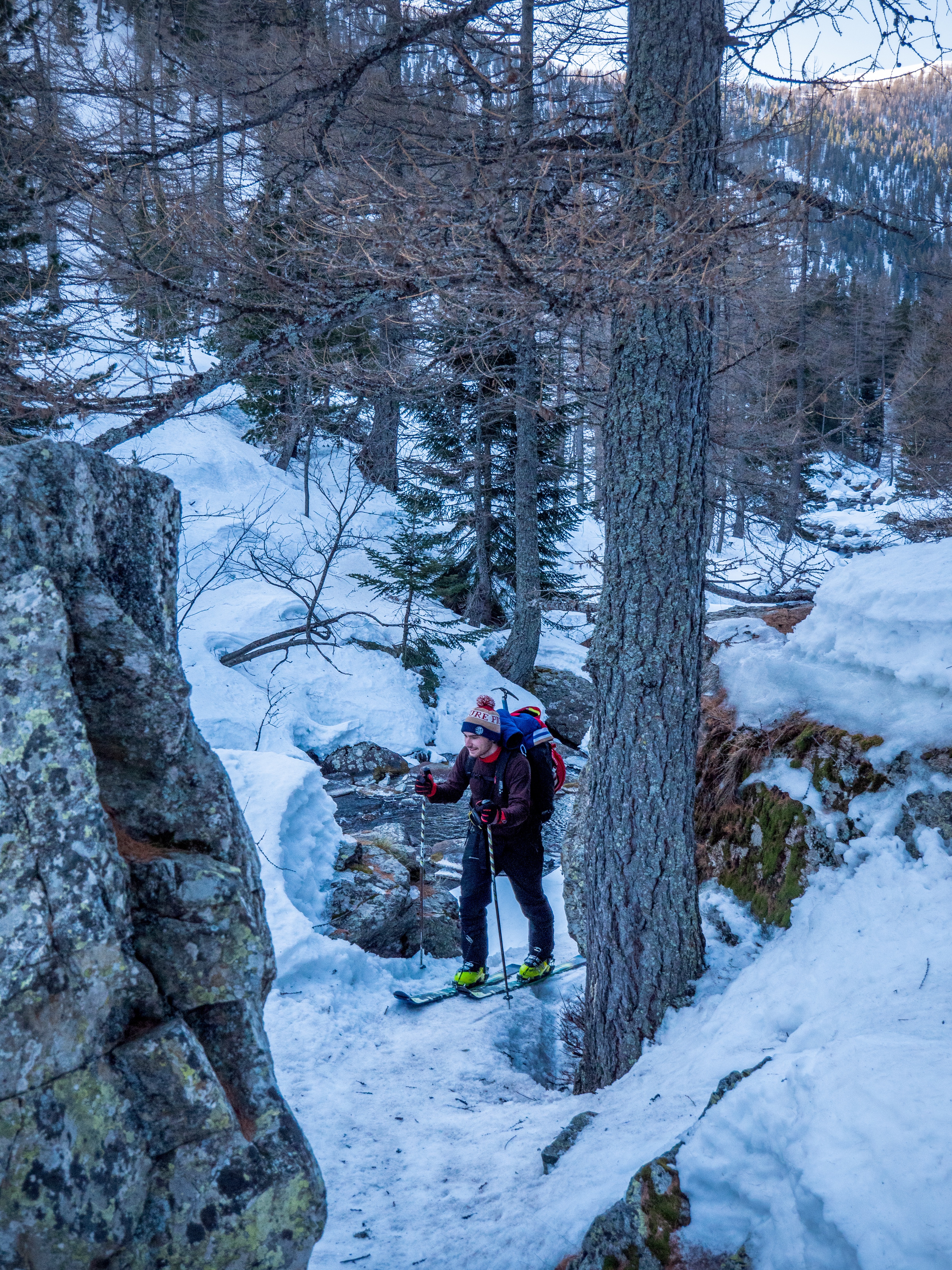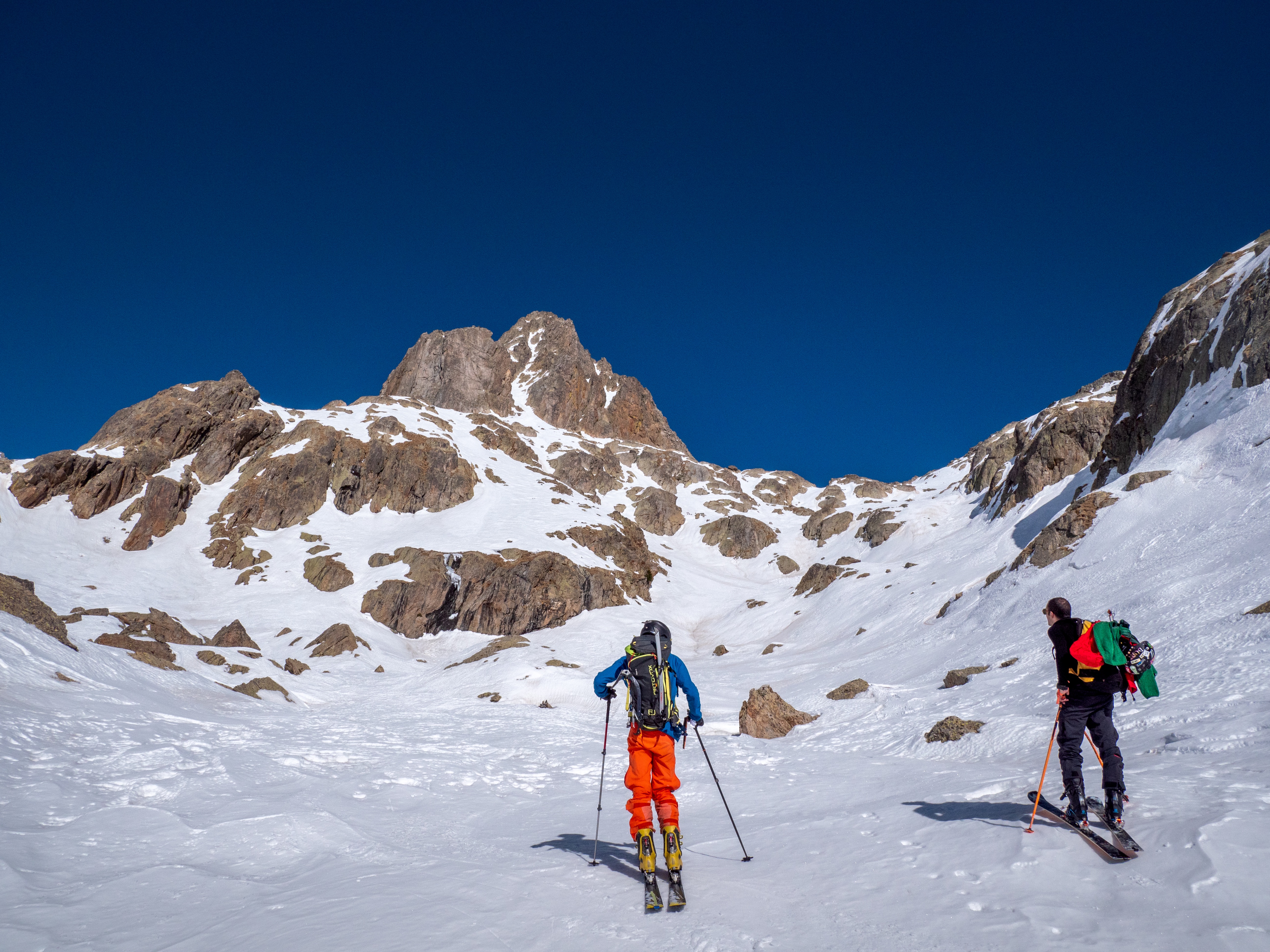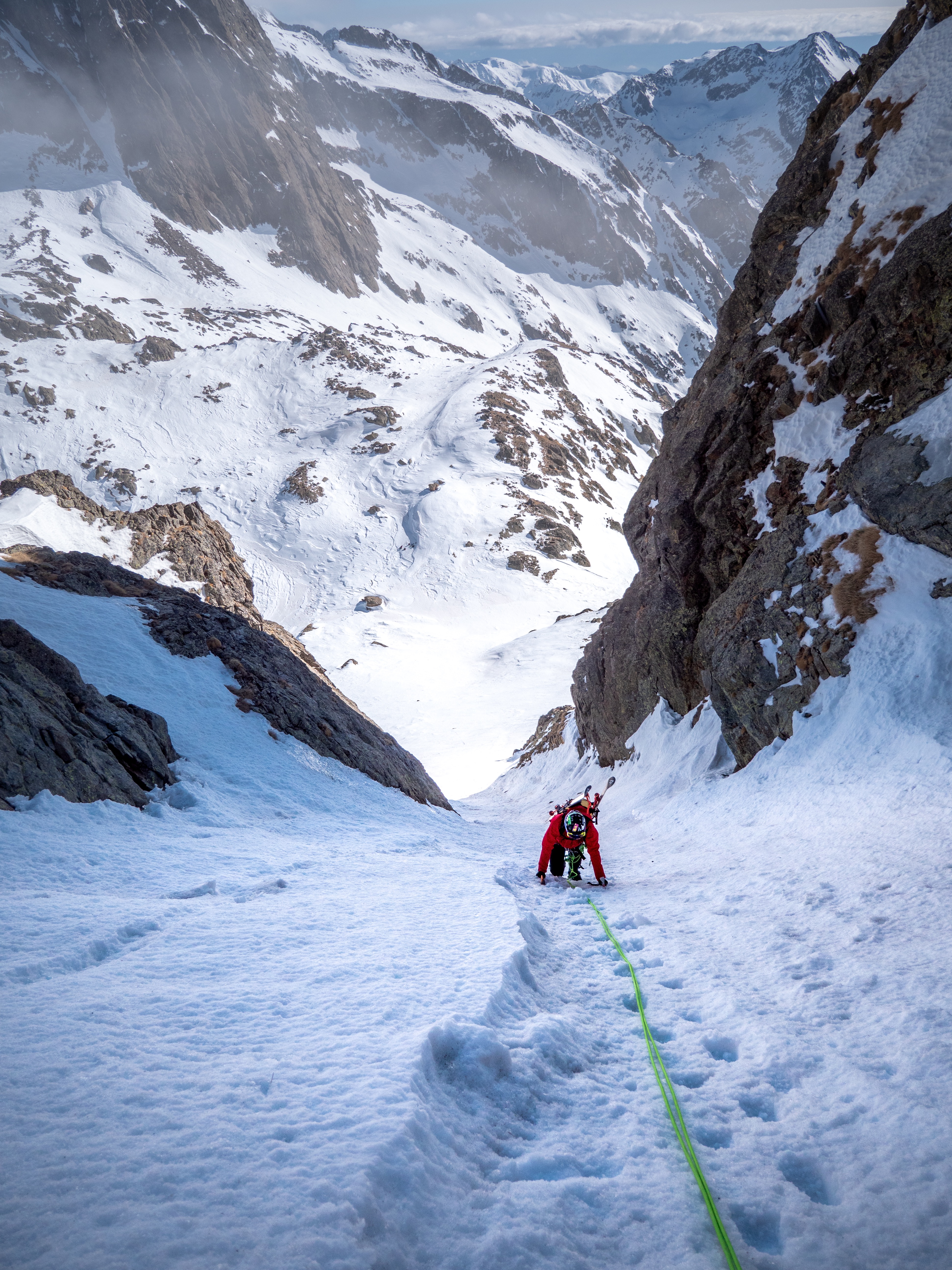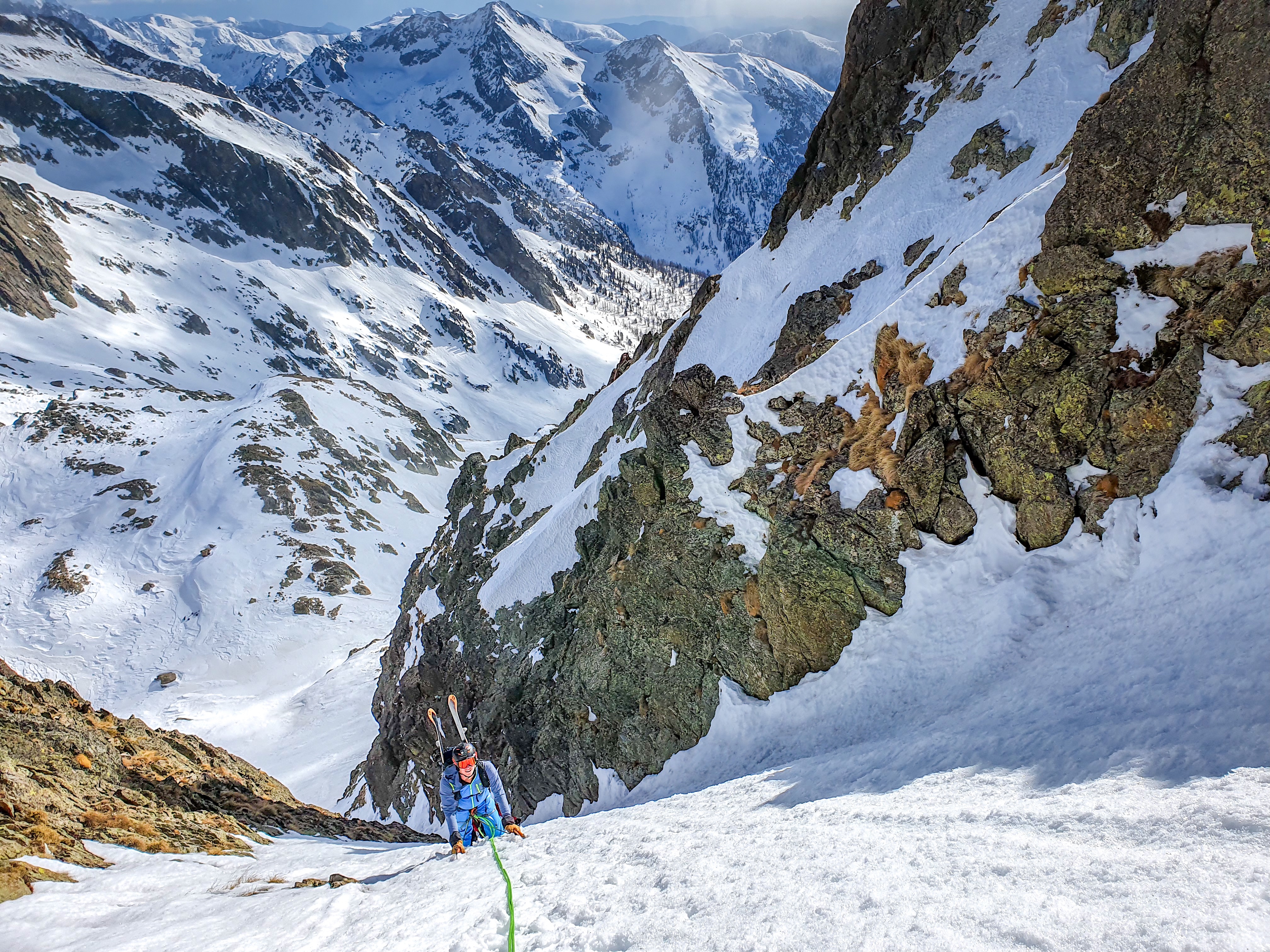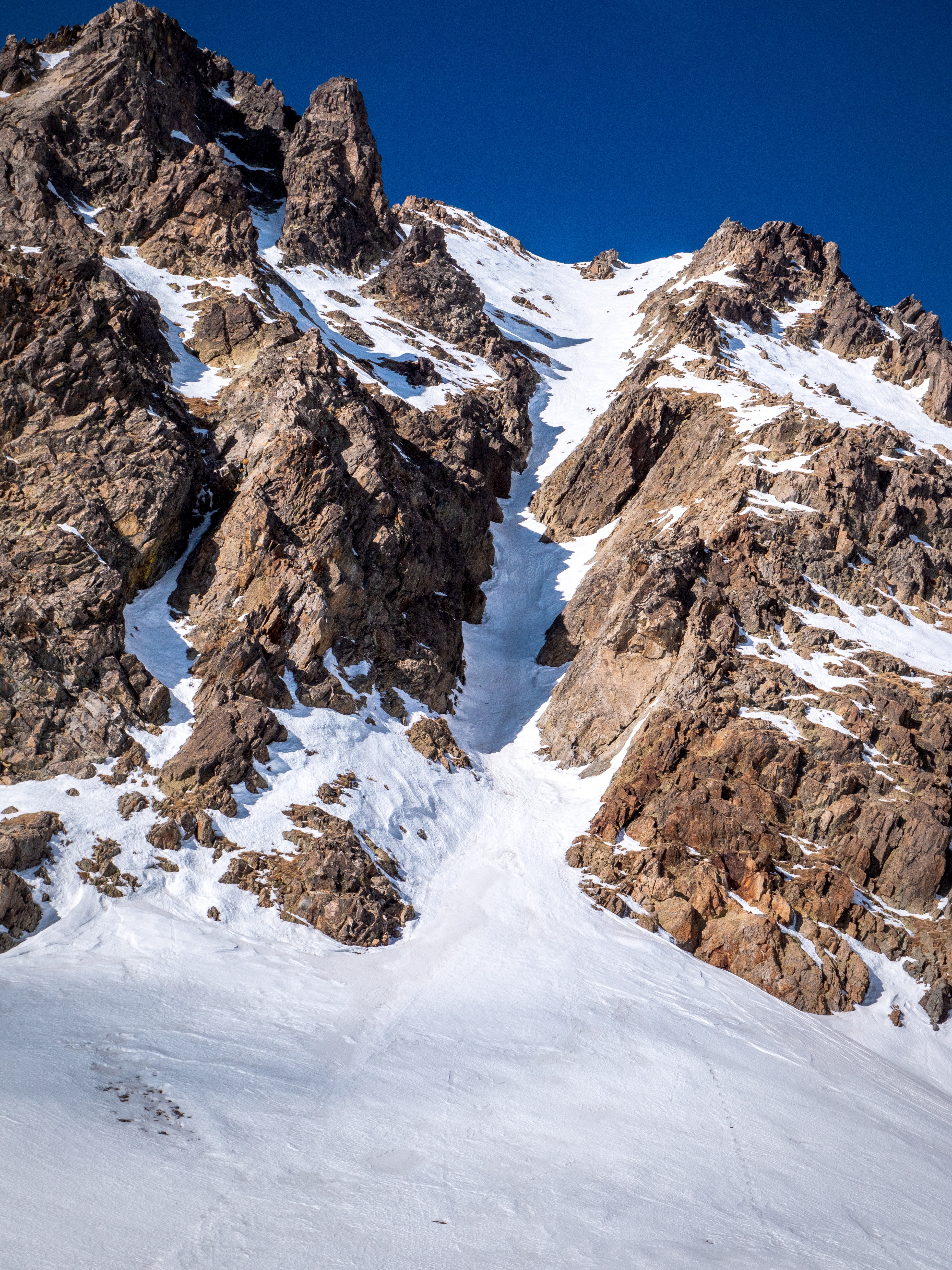 Nous sommes mi février 2020 et nous sommes toujours dans l'attente de nouvelles chutes de neige. Un des seuls avantages des conditions de neige actuel, est la stabilité du manteau neigeux. C'est donc dans cette optique que nous sommes partis pour le Caire de l'Agnel et son ascension par le couloir Sud Est. Ce couloir permet d'accéder au Caire de l'Agnel après 300 mètres de dénivelé positif dans un couloir a 45° de moyenne avec des passages a 50°.