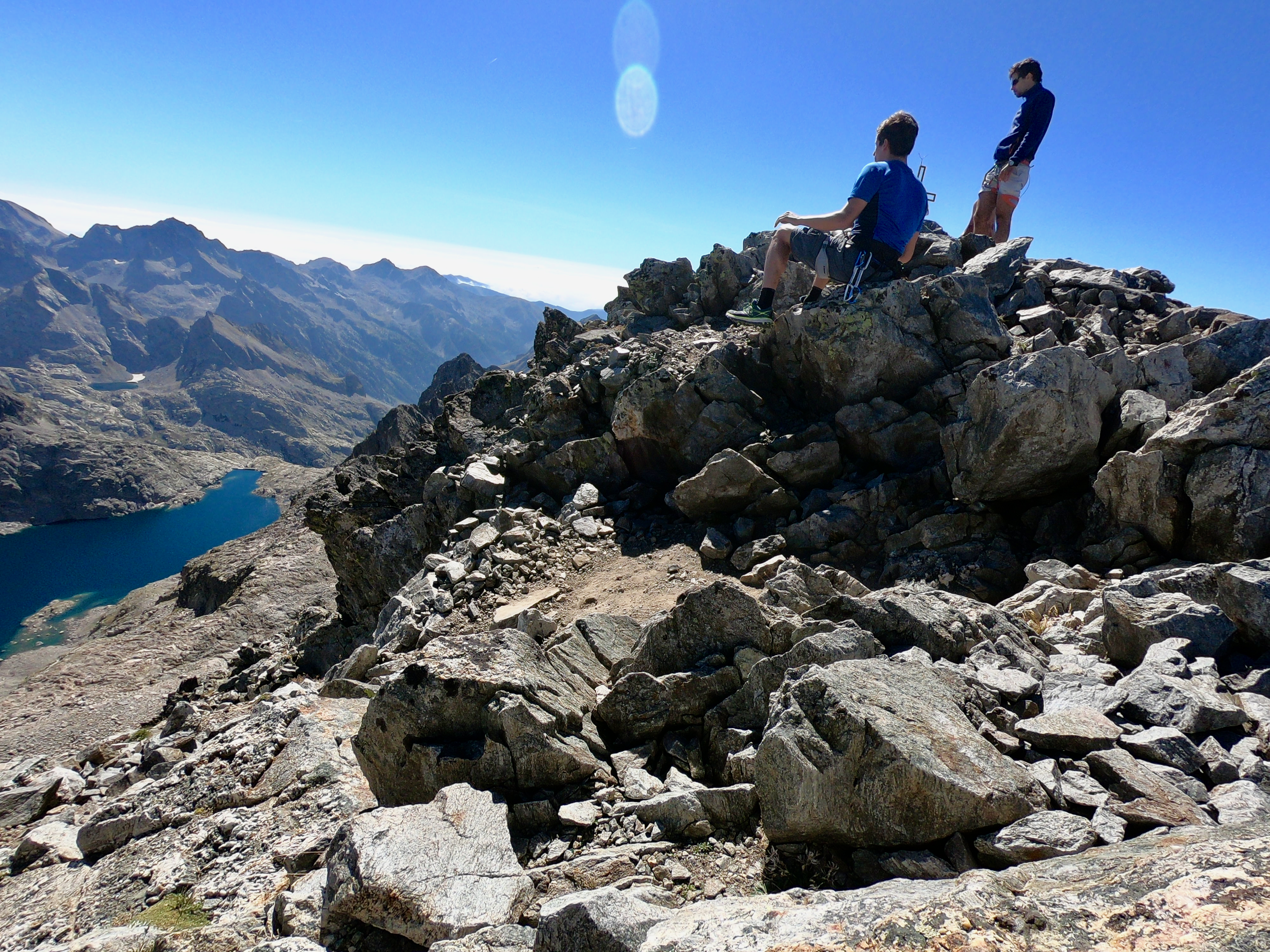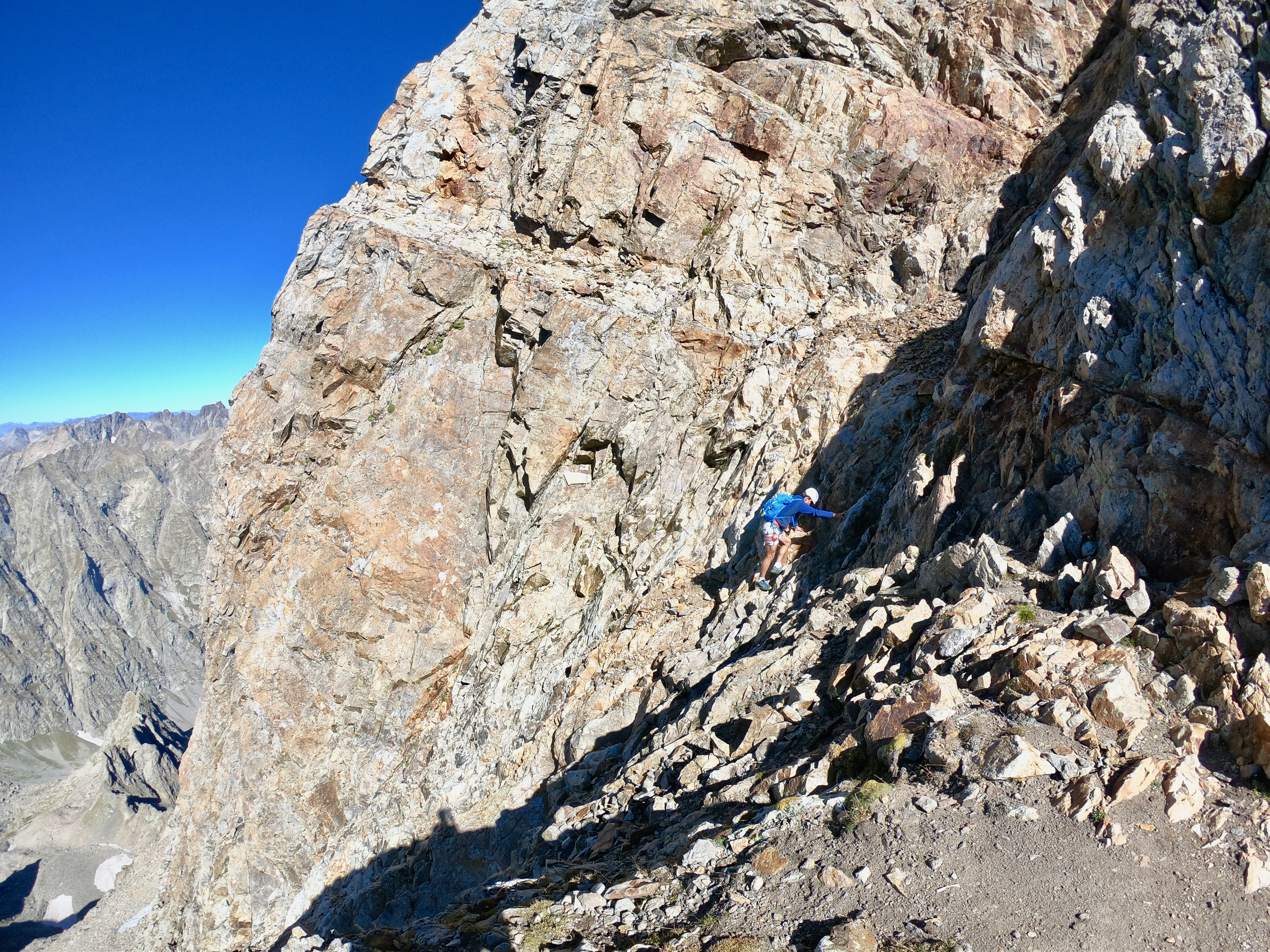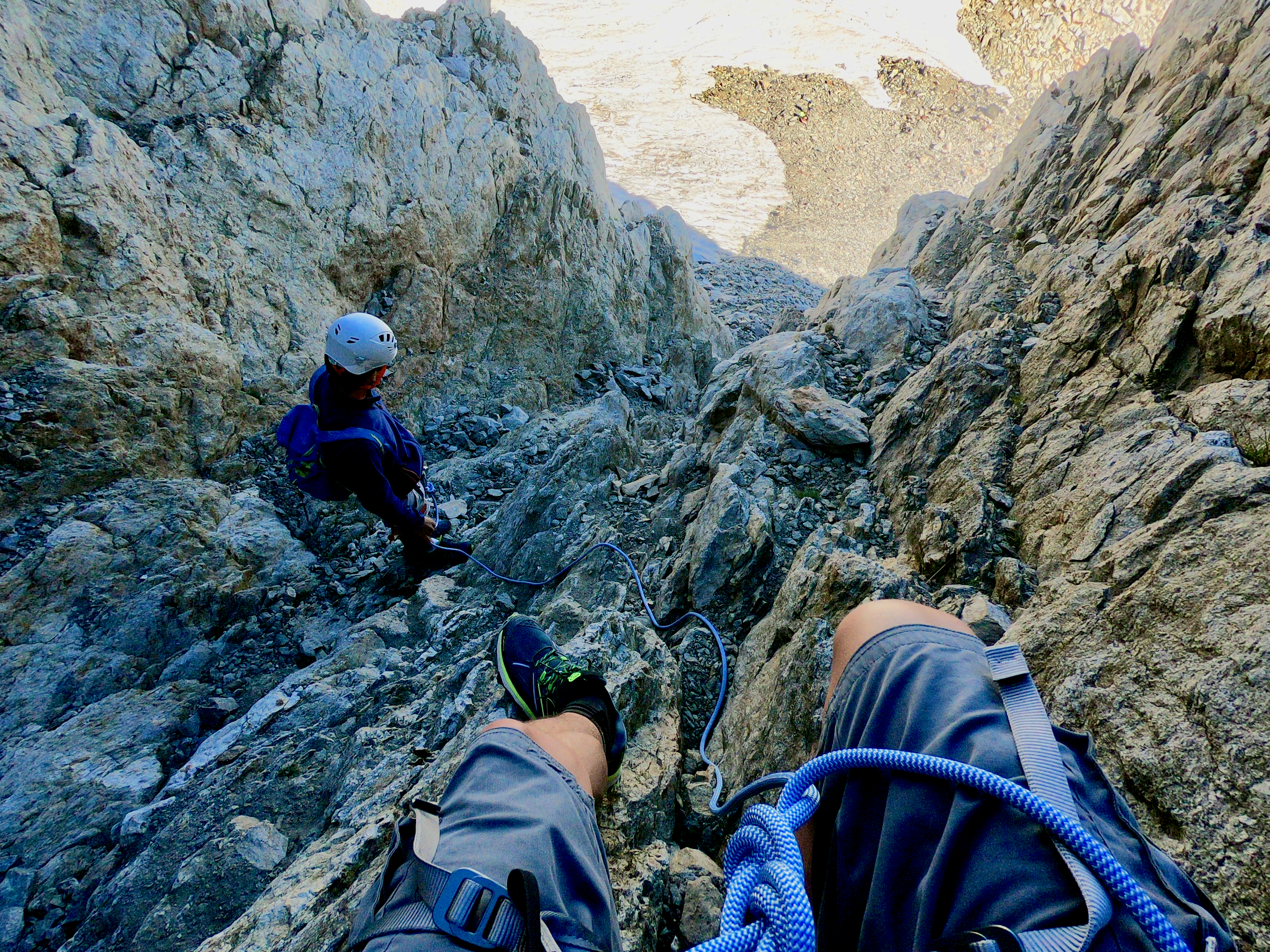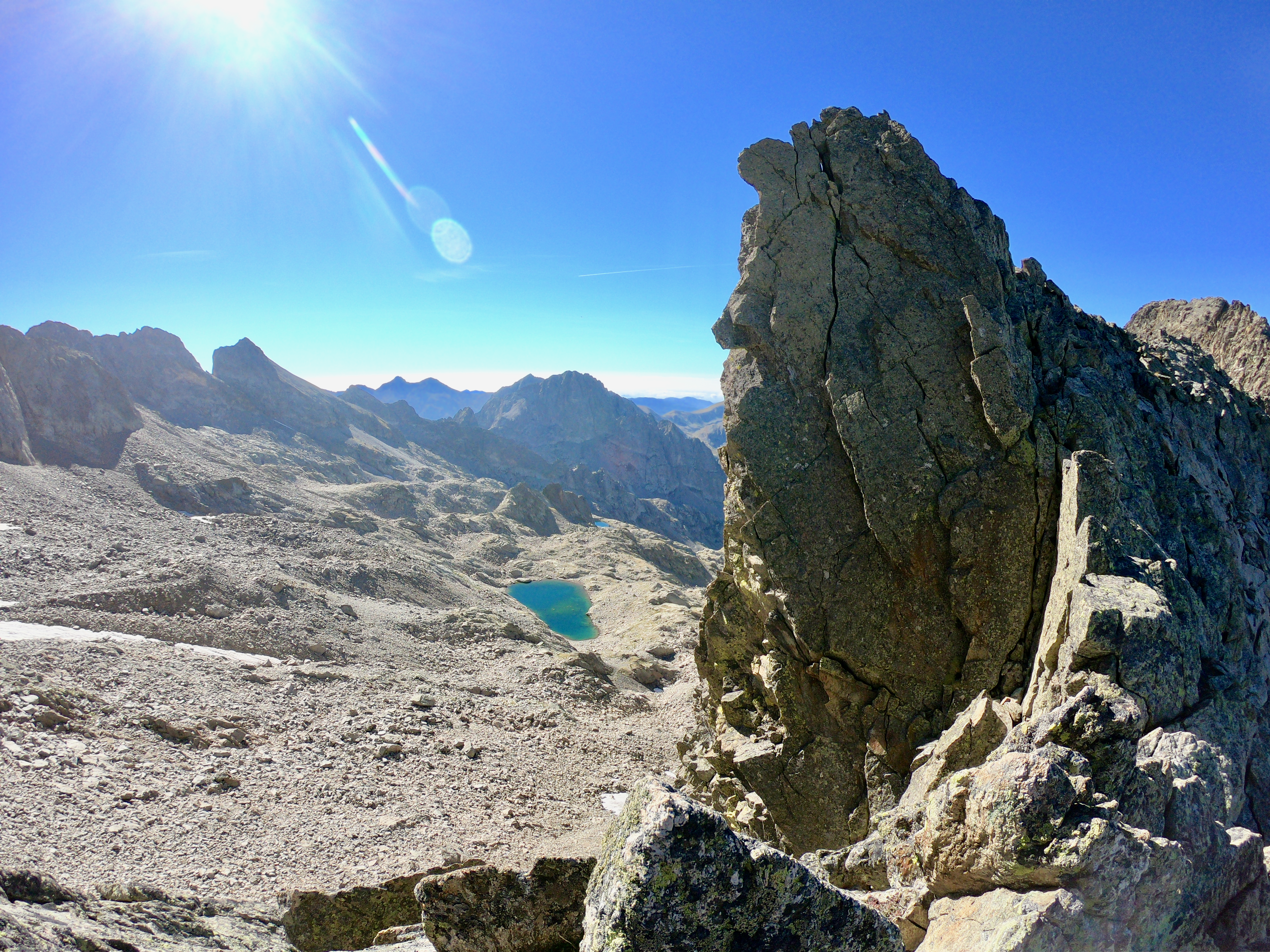 Une fois en haut nous avons essayer de rejoindre le balcon du Gélas en suivant l'arrête mais nous avons finalement décider de redescendre par le couloir du Gélas par manque de connaissance du terrain reliant la Cime et le Balcon du Gélas.