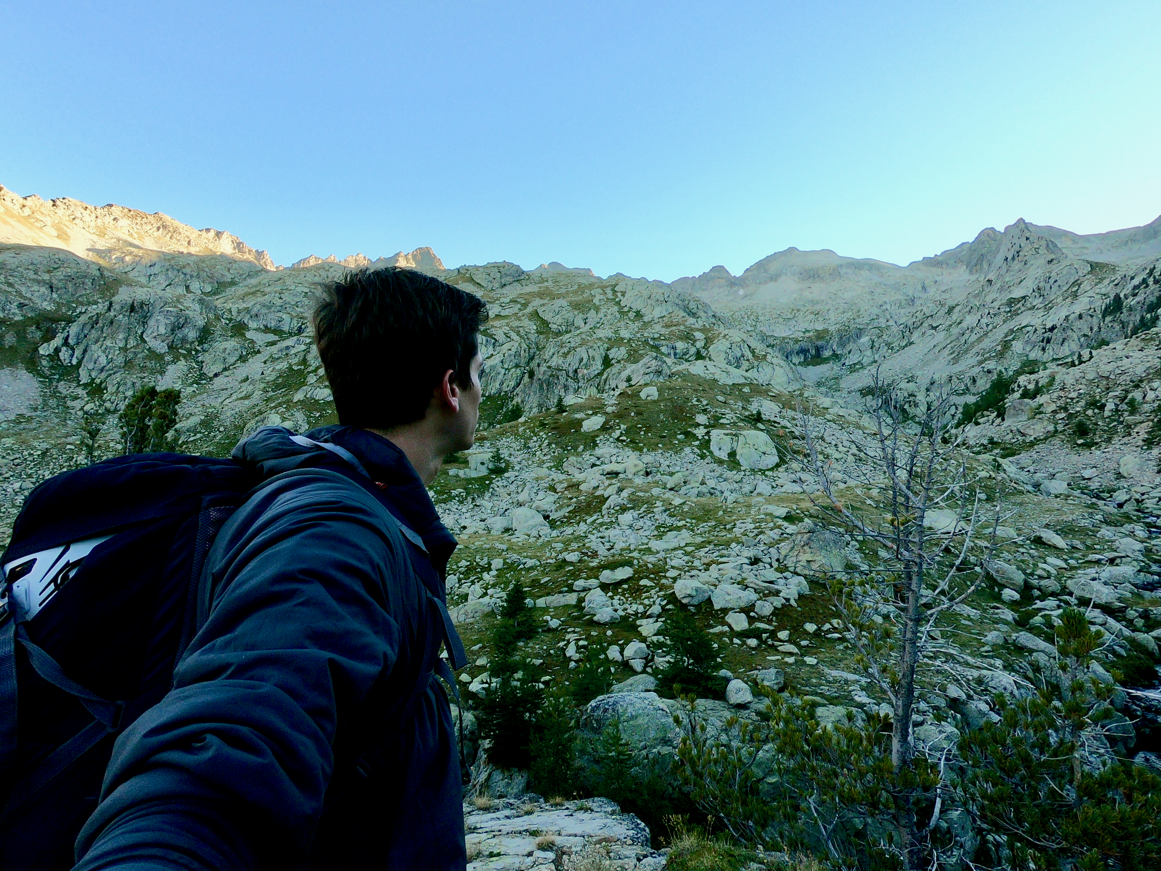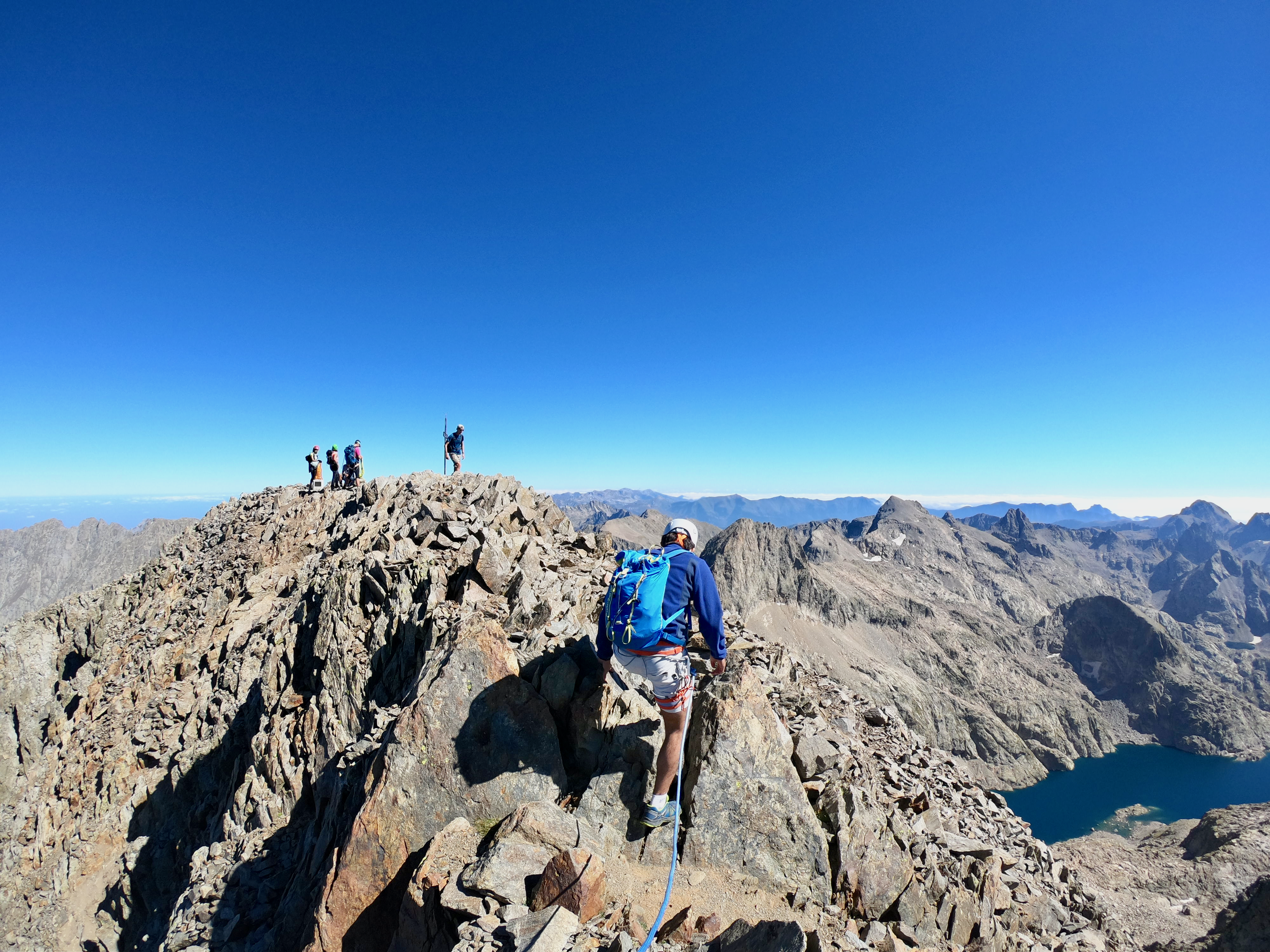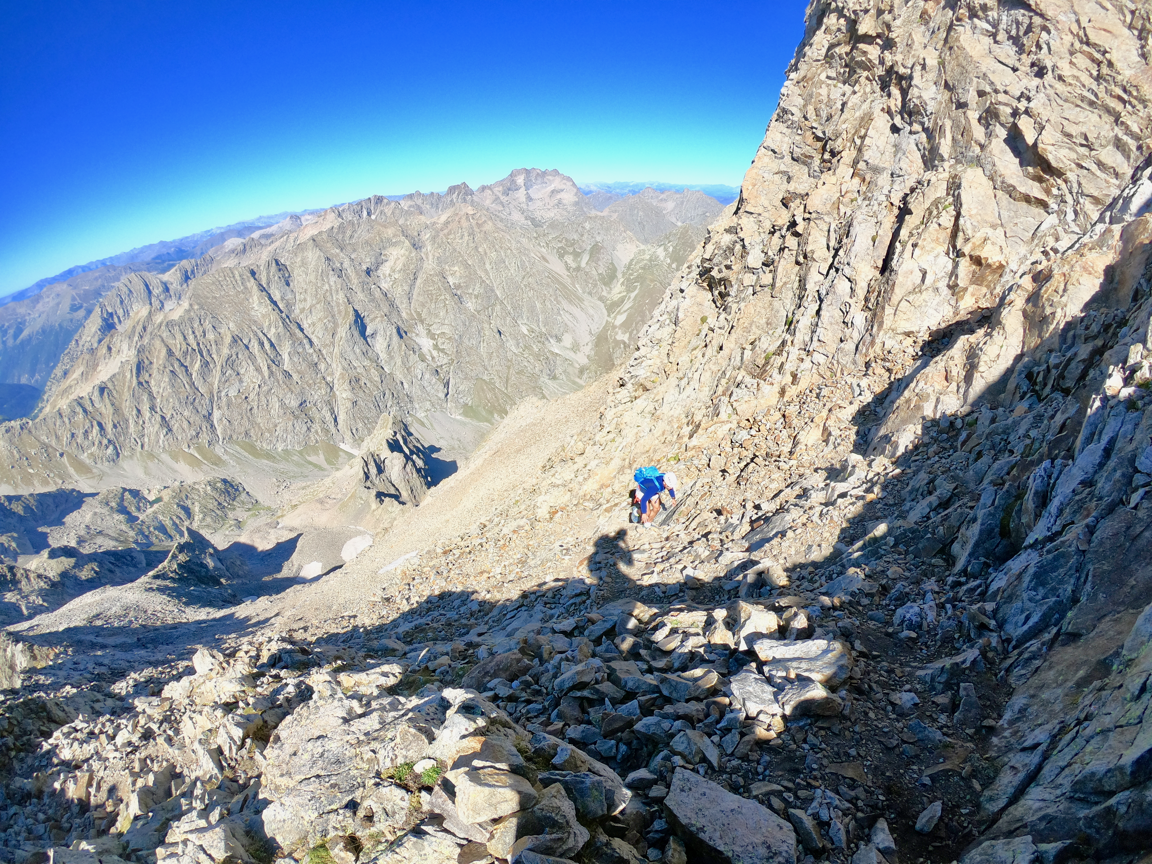 Une fois en haut nous avons essayer de rejoindre le balcon du Gélas en suivant l'arrête mais nous avons finalement décider de redescendre par le couloir du Gélas par manque de connaissance du terrain reliant la Cime et le Balcon du Gélas.