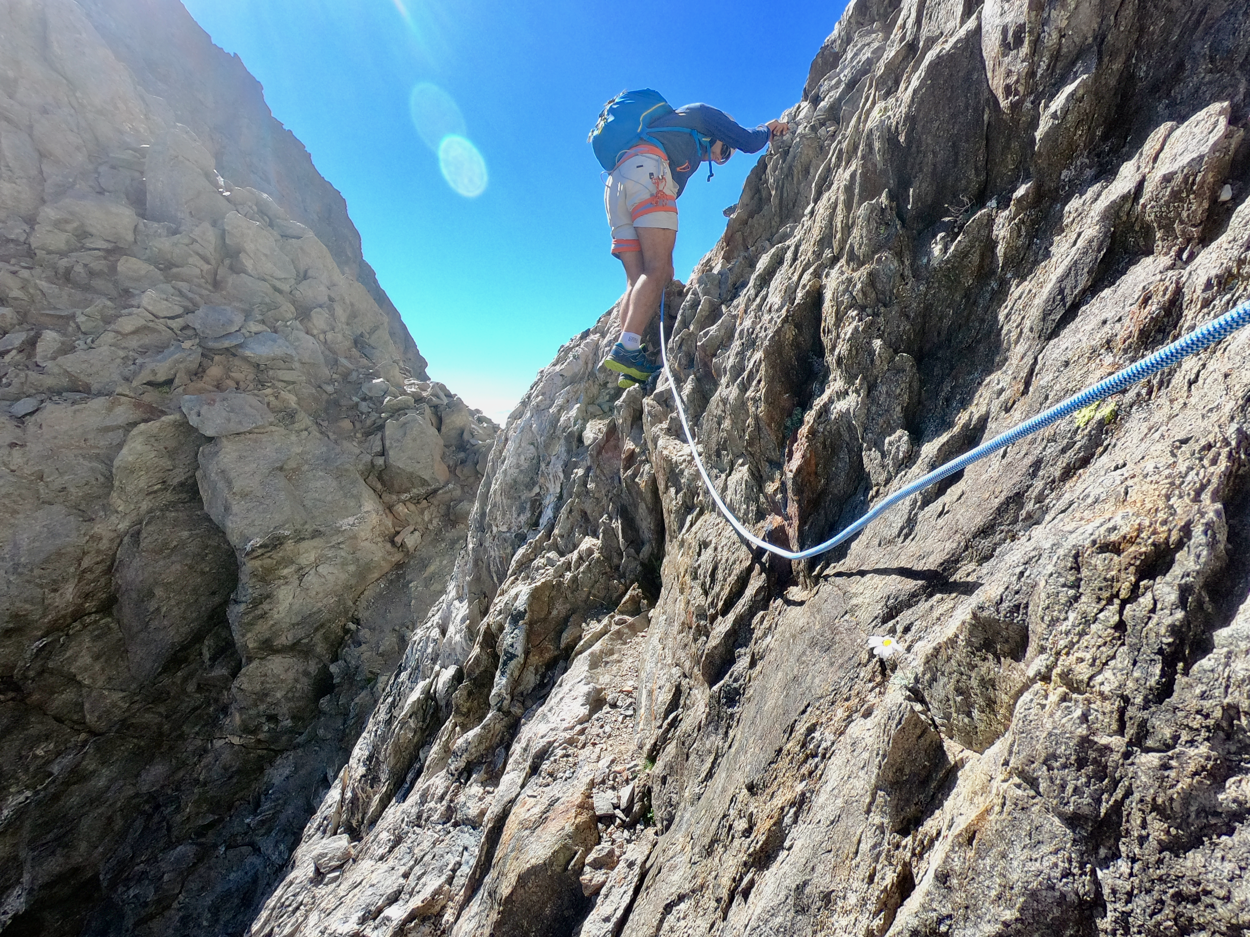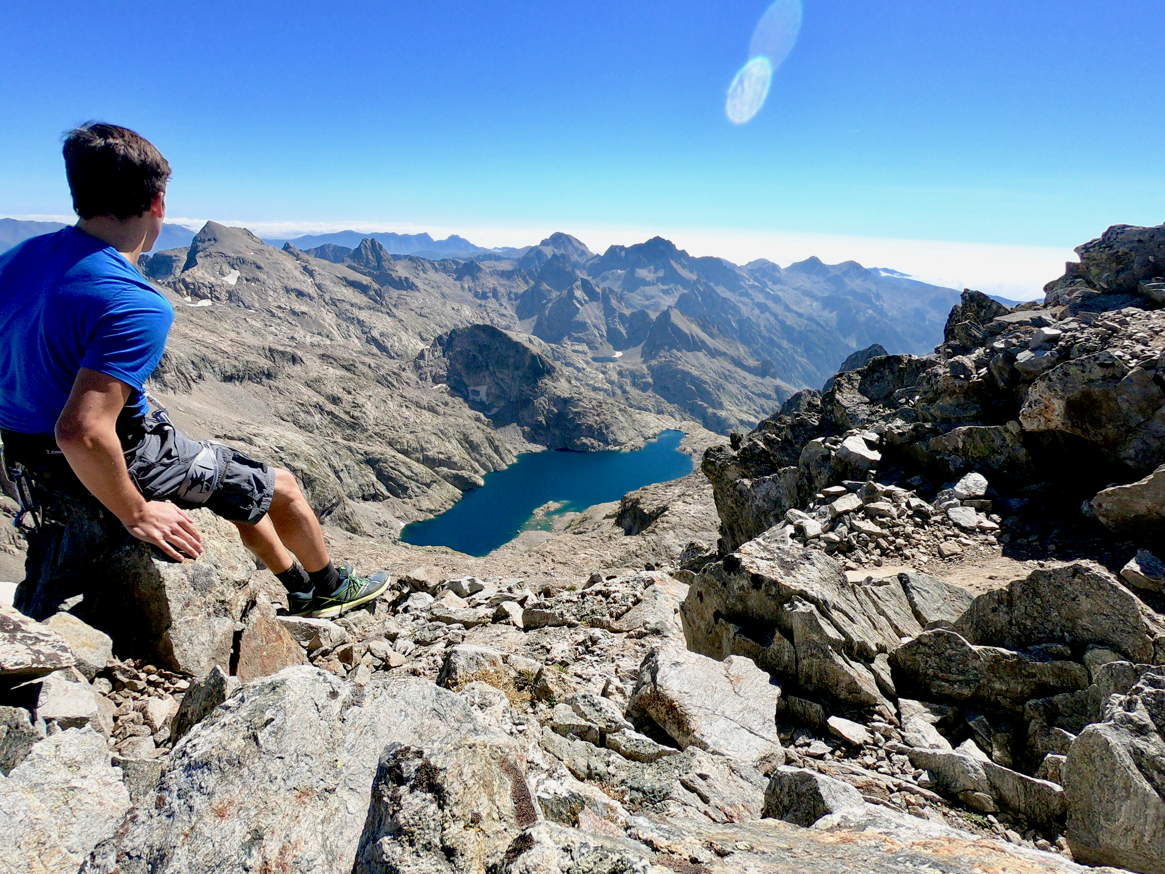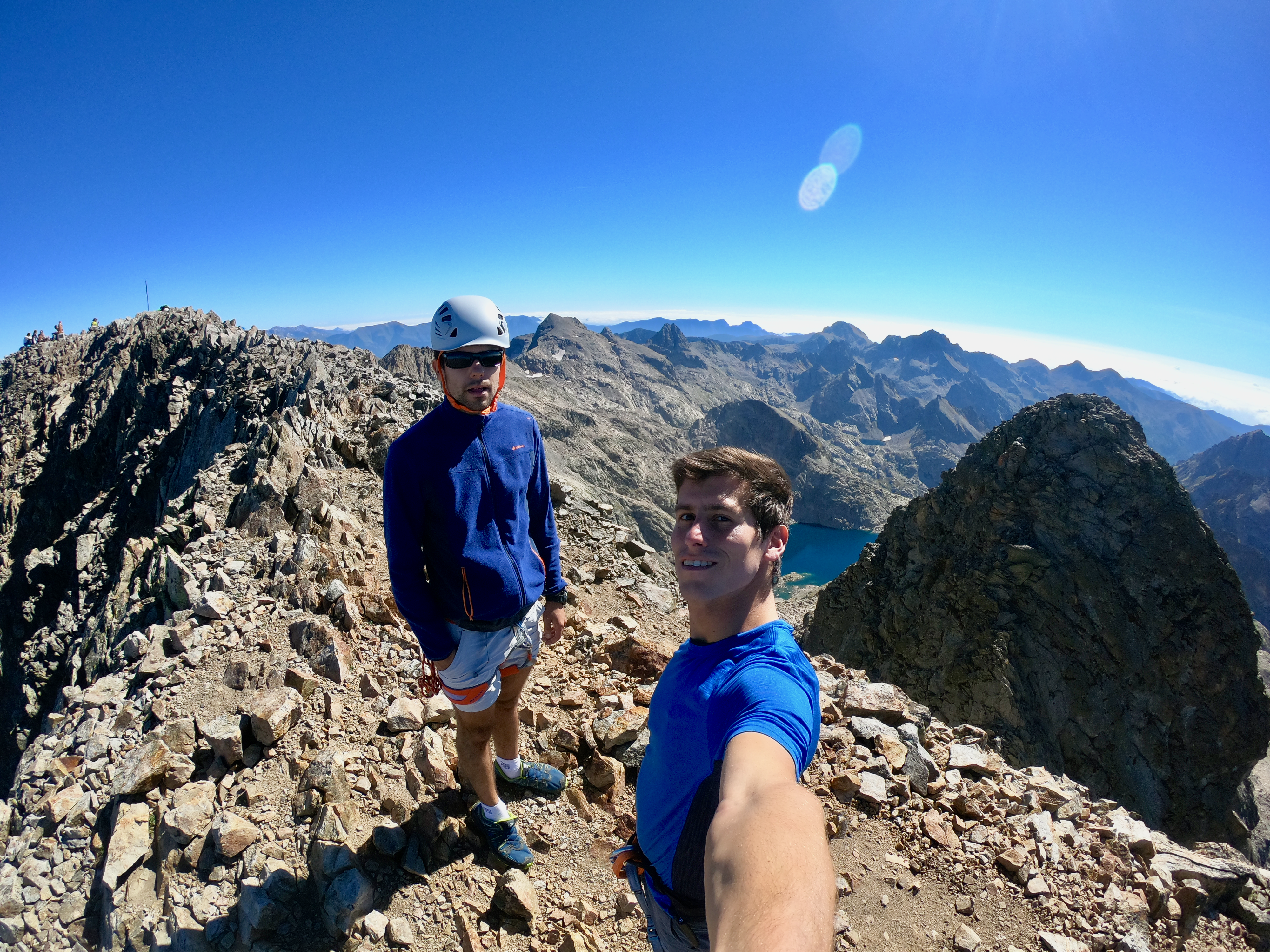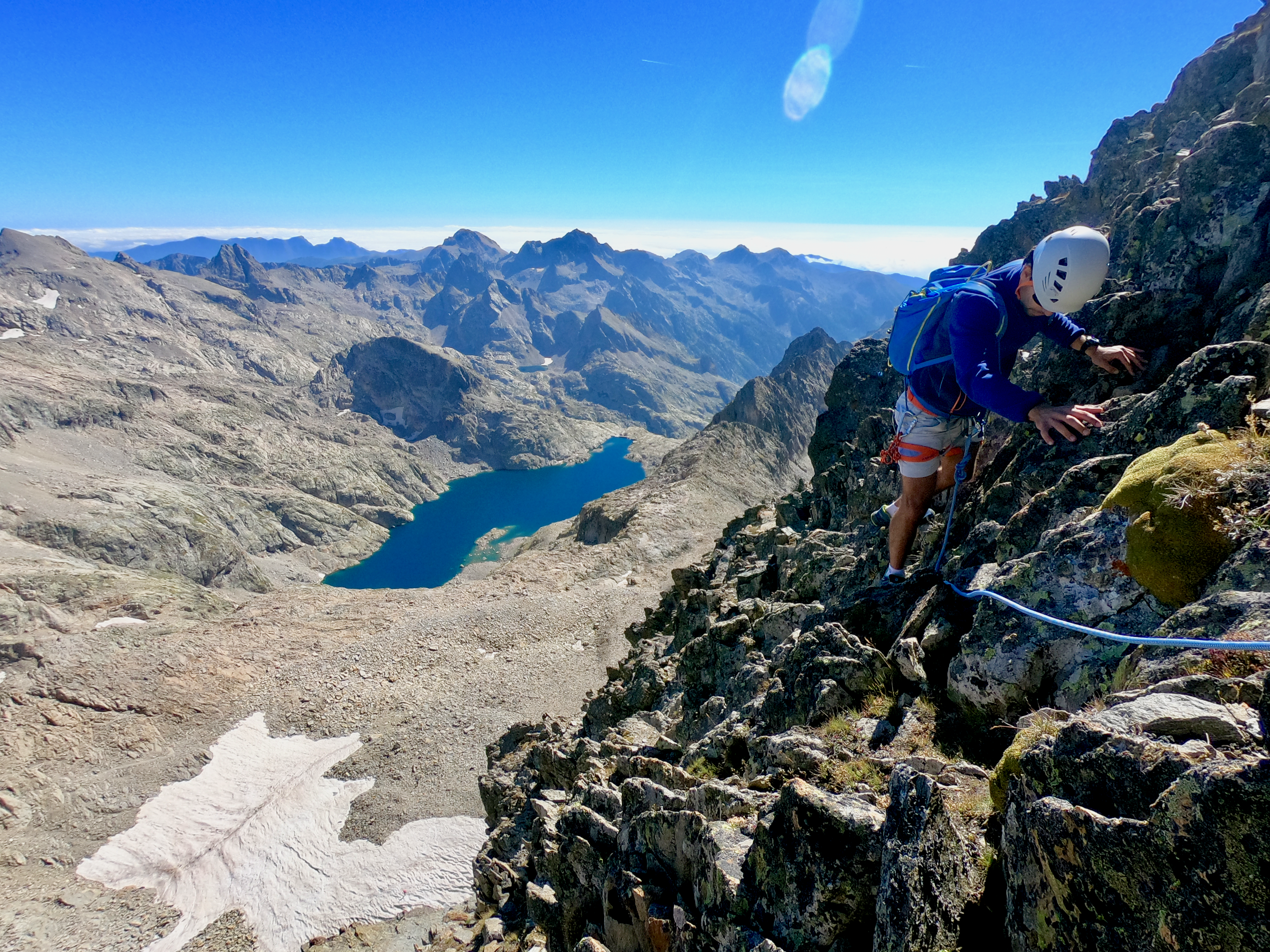 Une fois en haut nous avons essayer de rejoindre le balcon du Gélas en suivant l'arrête mais nous avons finalement décider de redescendre par le couloir du Gélas par manque de connaissance du terrain reliant la Cime et le Balcon du Gélas.