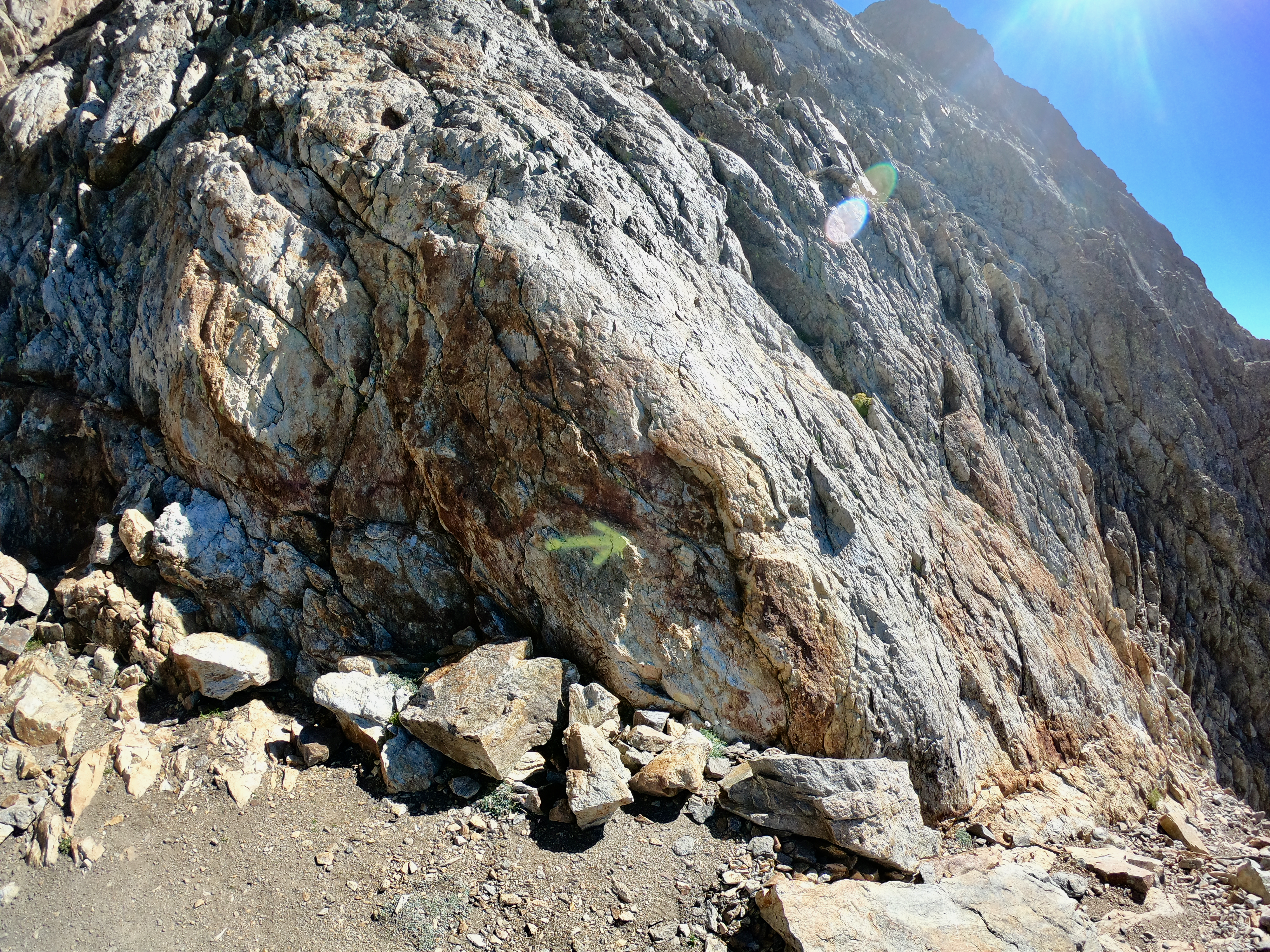 Nous avions décidé pour cette ascension de passer par le Collet St-Robert et de longer l'arrête jusqu'à la cime du Gelas, nous avons très rapidement trouvé l'itinéraire balisé par des marques jaunes ce qui nous a grandement facilité cette ascension.