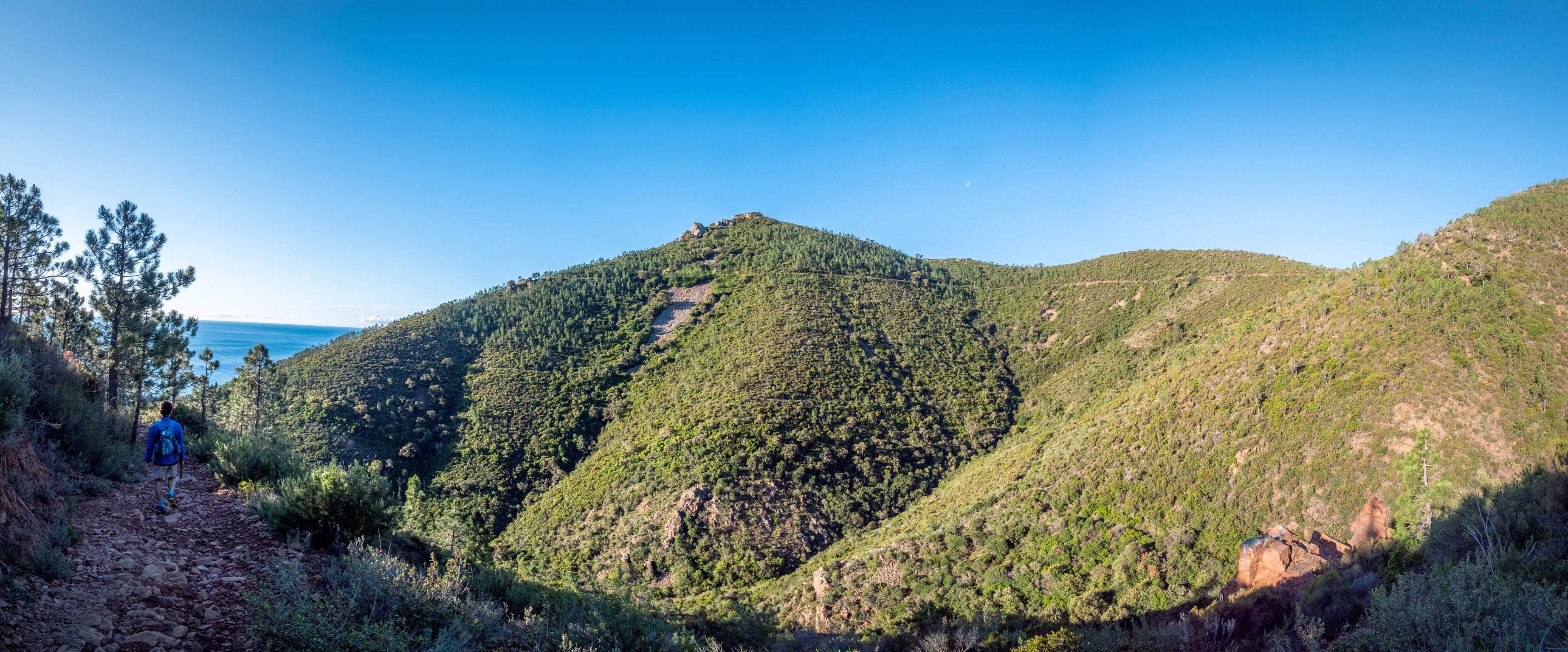 Après un réveil à 3h du matin, nous avons pris la direction du Pic d’Aurelle depuis la Gare du Trayas.